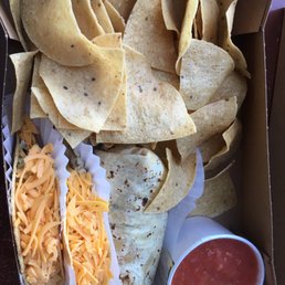 Shredded beef graded cheddar cheese sliced iceberg lettuce within a freshly cooked corn taco shell. Shredded Beef grated Cheddar Cheese sliced Iceberg Lettuce within a freshly cooked Corn Tortilla Shell Plus FREE Tortilla Chips Salsa. Find Me GF Find Me Gluten Free.